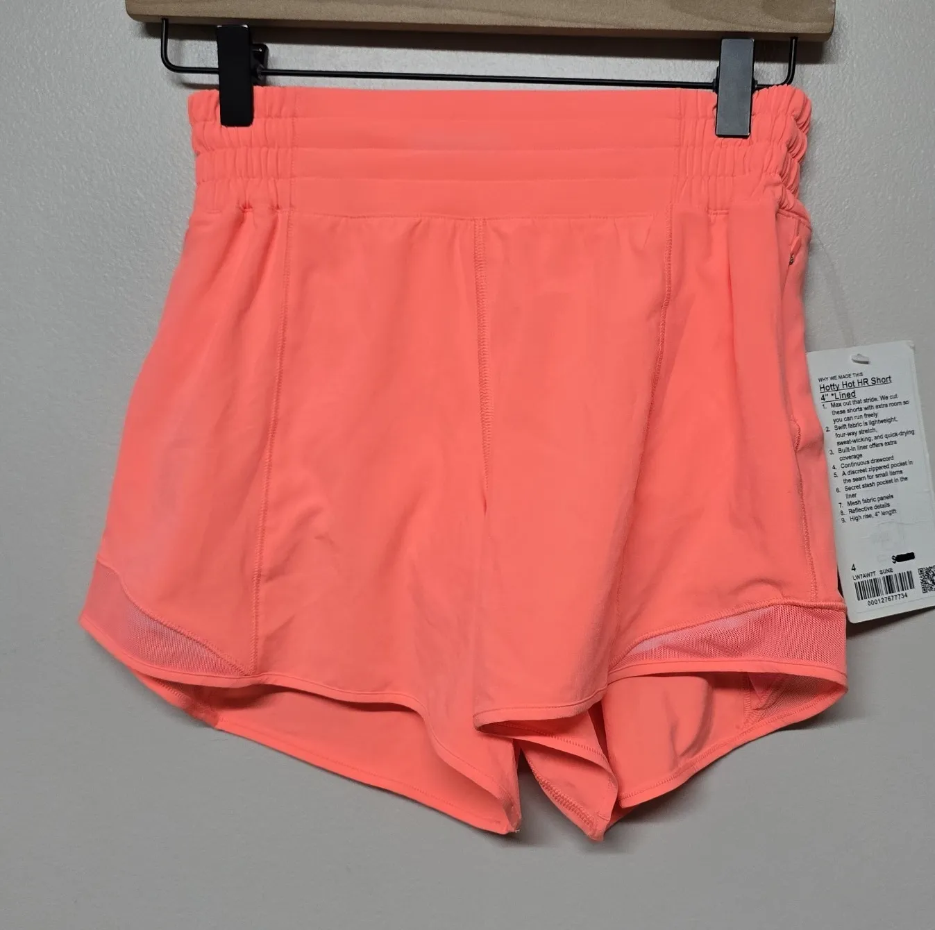 The Lululemon Hotty Hot LR Short 4" Lined Swift in size 4 features a vibrant Sunset color, designed... Show more