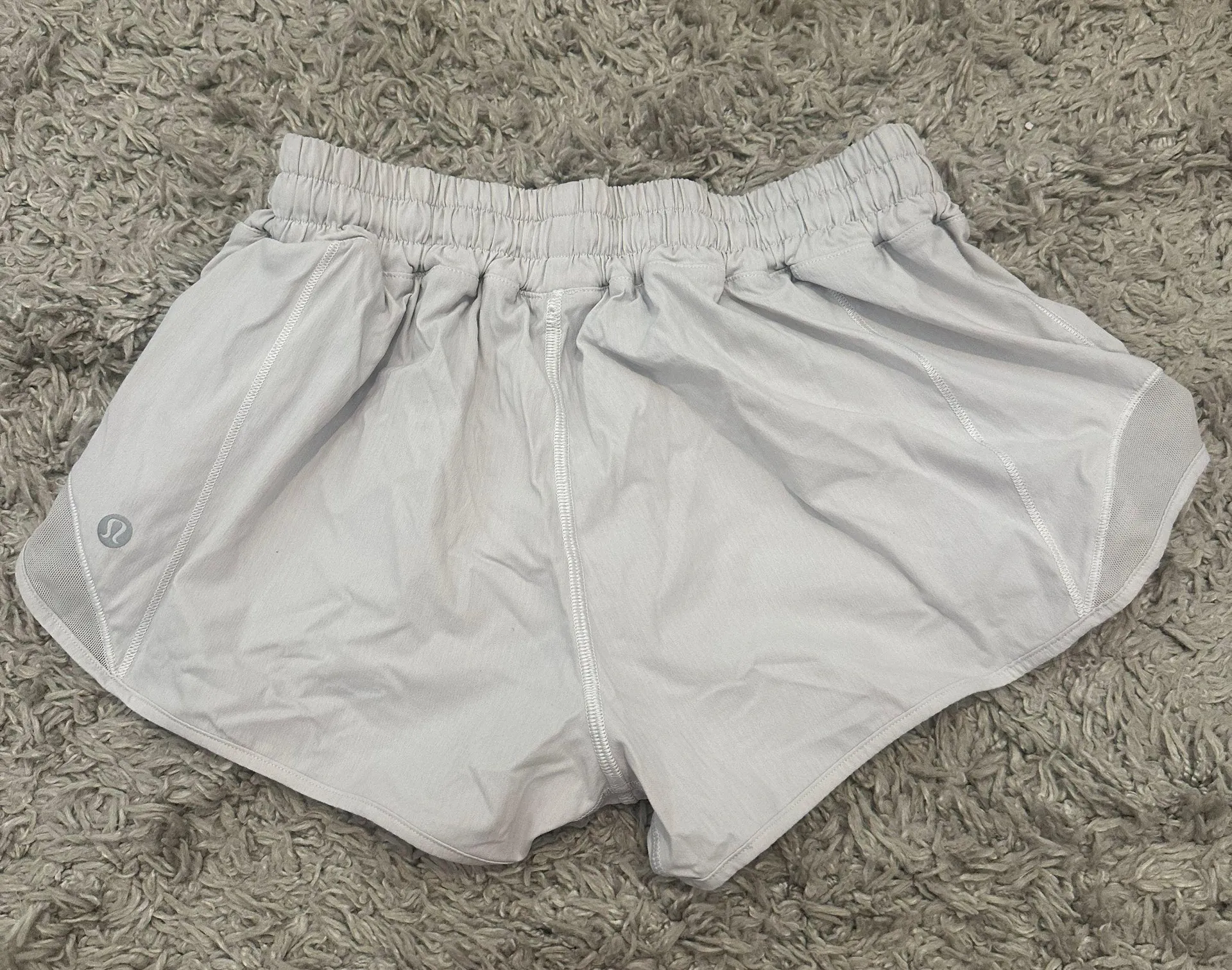 2.5 inch low rise hotty hot Lululemon shorts white, liner is cut out!