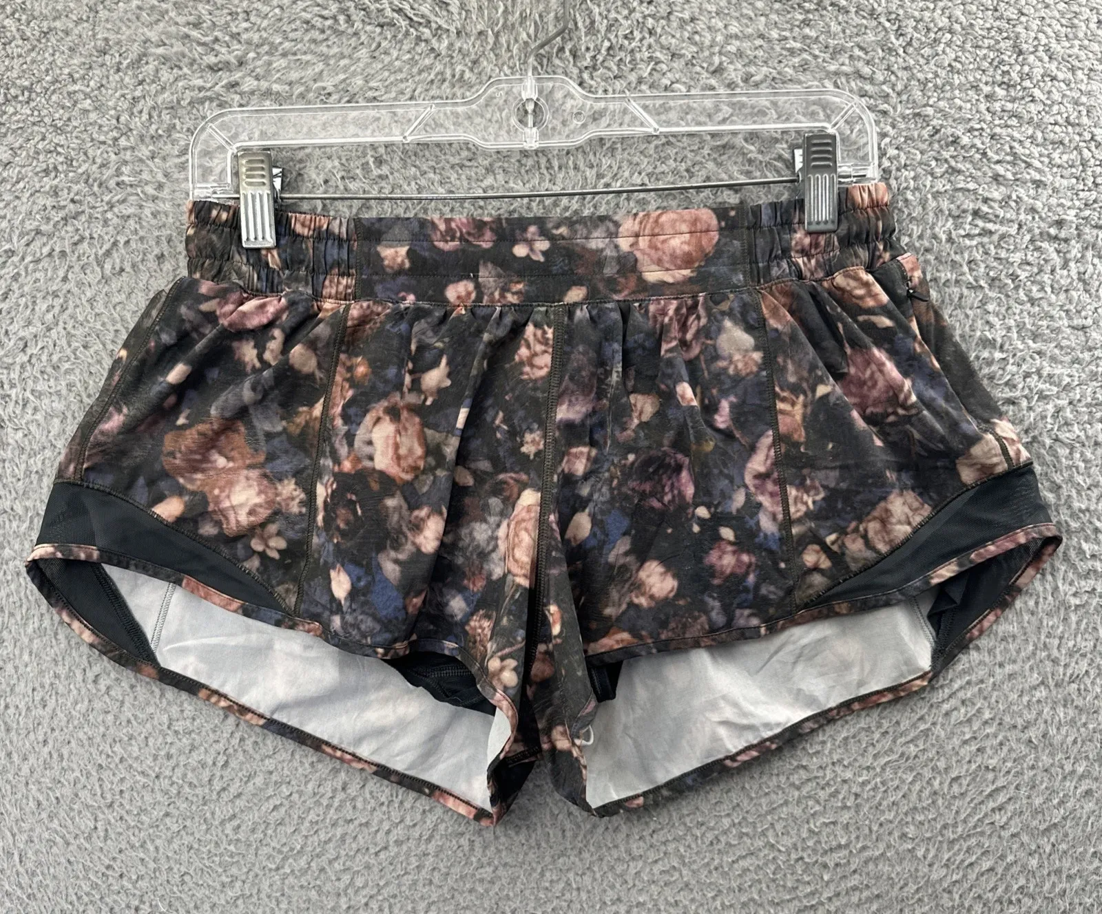 Low rise Pull on with elastic waist Attached liner No rip tag, size dot inside liner pocket Preowne... Show more
