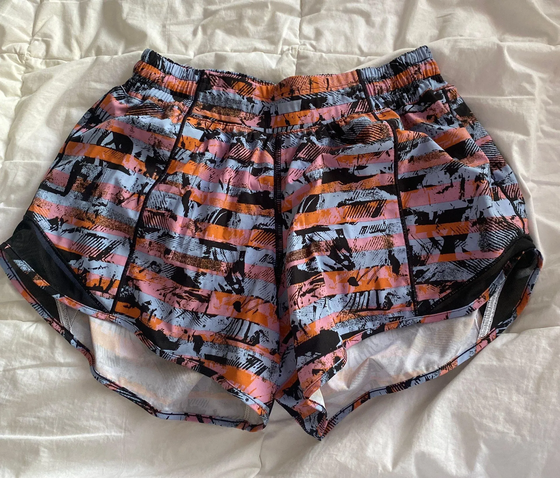 Lululemon Hotty Hot Shorts Rare Pattern Size 6 Tall Pink/Orange/Blue/Black Black Mesh side detaili... Show more