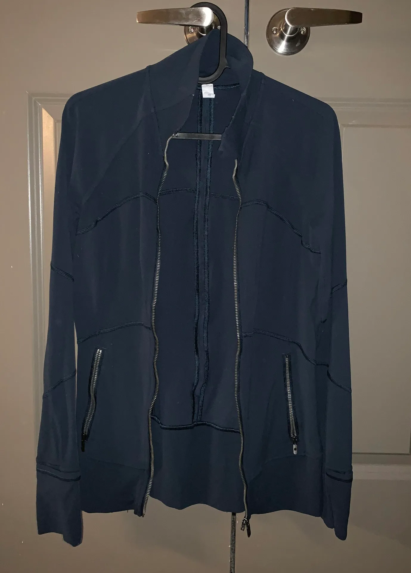 Never worn, and super soft!! I cut the tags because I know they bother me! The color is a dark blue.... Show more