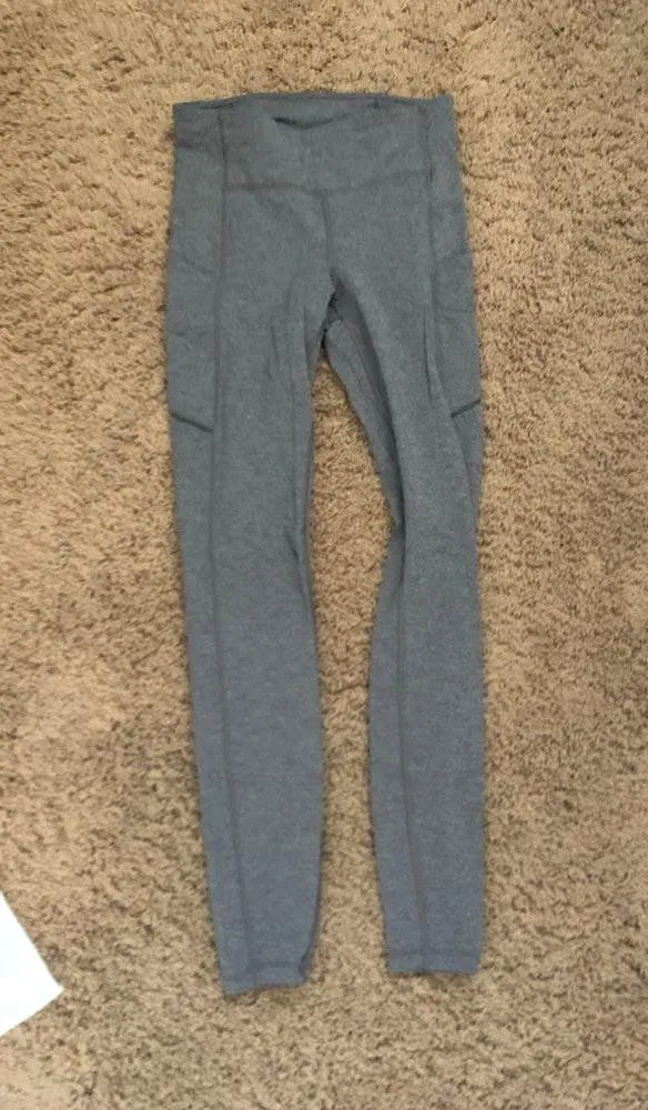 sporty grey lululemon leggings, has pockets on the side of the leggings and are super cute! just too... Show more