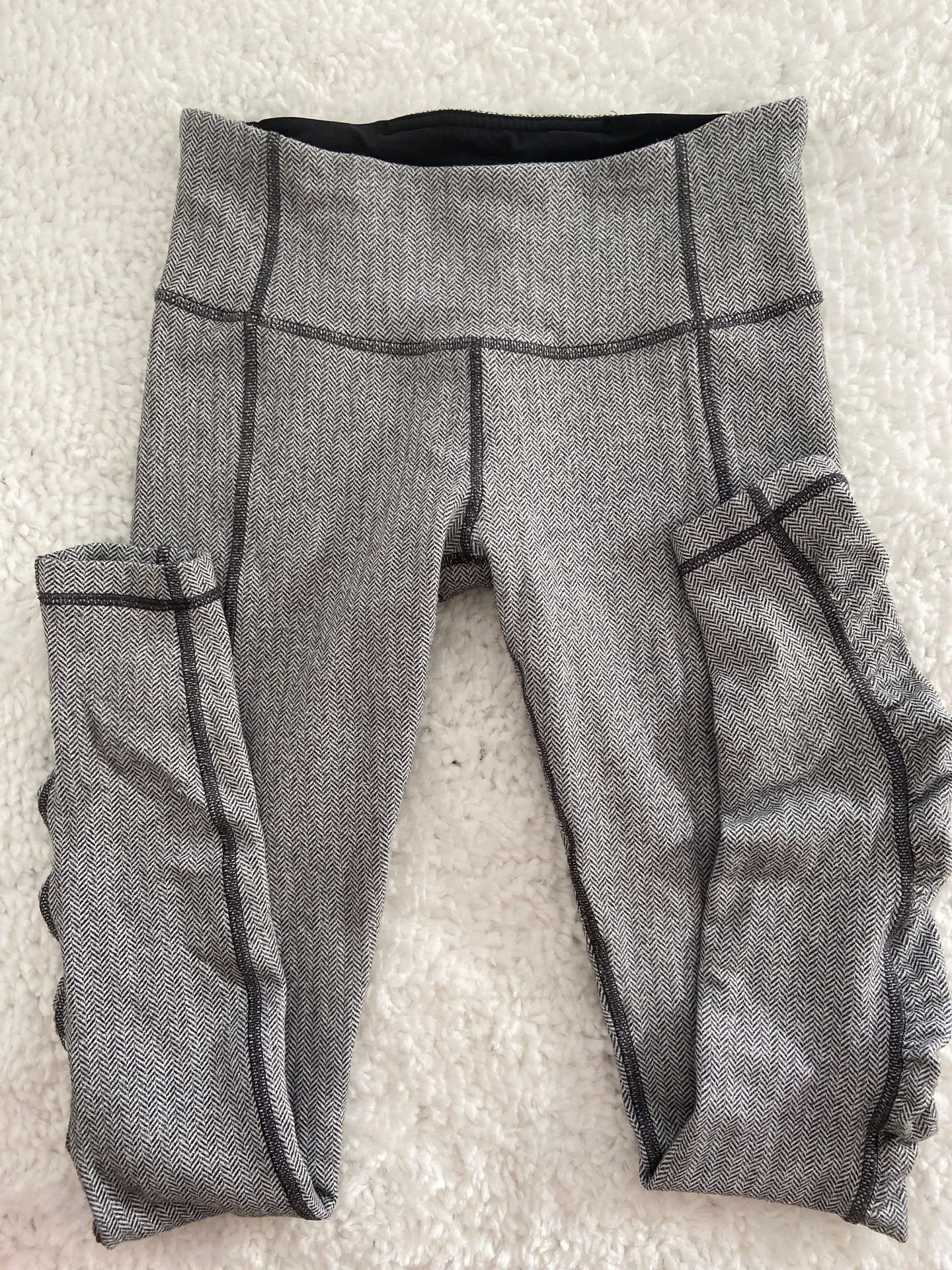 Super comfy - good condition - tag is ripped off. Scrunched side on the lower leg!