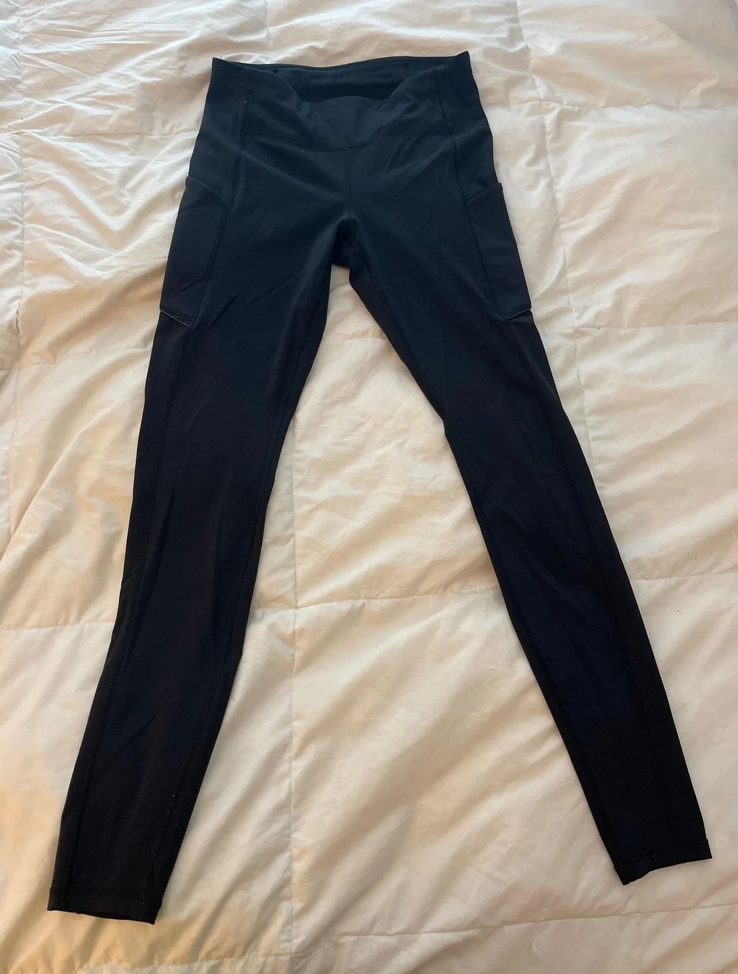 Black, full length, lululemon leggings. In great condition! Has side pockets on both sides and a zip... Show more