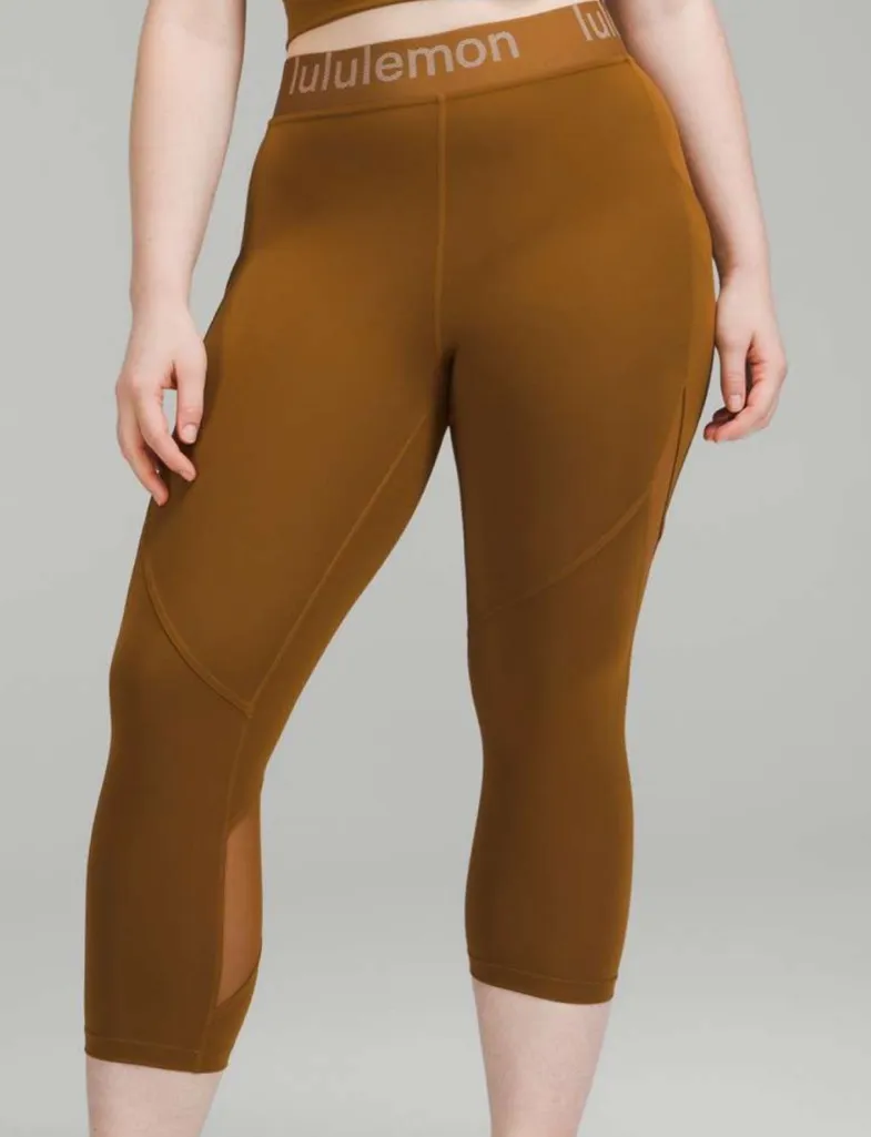 Lululemon Logo Waistband High-Rise Training Crop 21" Rich Caramel Size 6 abrasion-resistant fabric... Show more