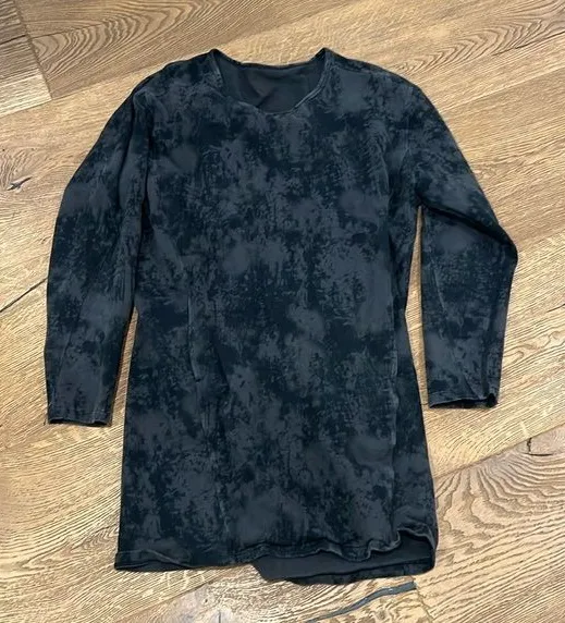 Lululemon Long-Sleeve Tie-Dye Black-Gray Long-Sleeve T-Shirt Dress with kangaroo pocket Size estima... Show more