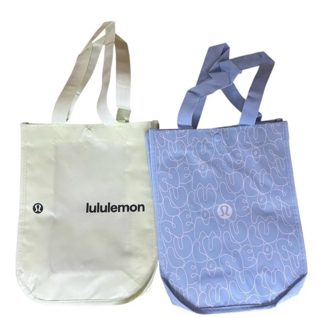 Lululemon Brand new lot of two small shopper tote bags daydream blue and lime 100% authentic