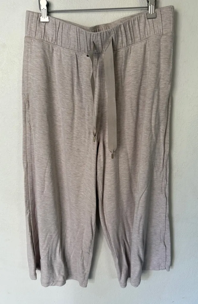 Stylish light brown pants by Lululemon Athletica. Features soft fabric and comfortable fit.