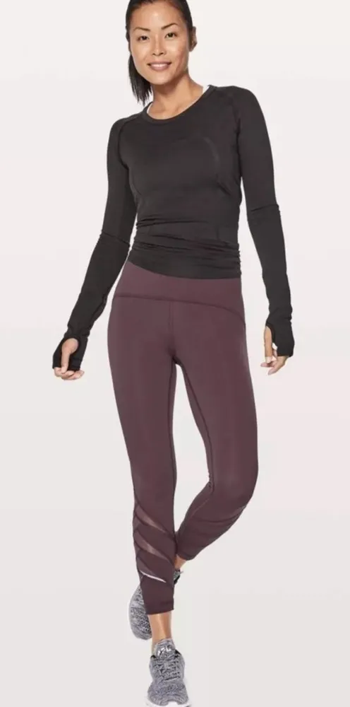 Lululemon Motionful 7/8 Tight 25” Black Cherry plum purple zip pocket mesh Size 4 - $42 - From Amanda