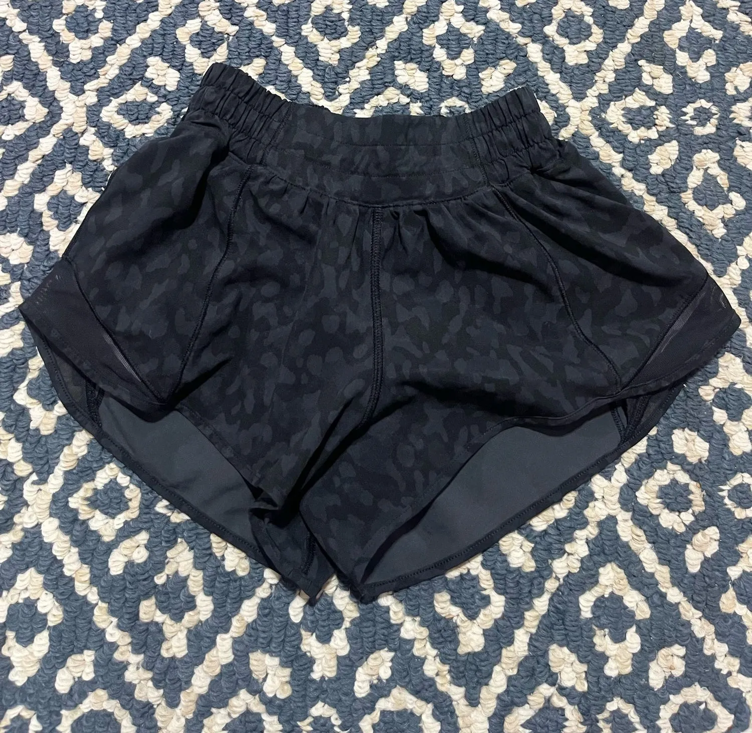Chic black athletic shorts with a subtle pattern. Ideal for workouts or casual wear. The inside lini... Show more