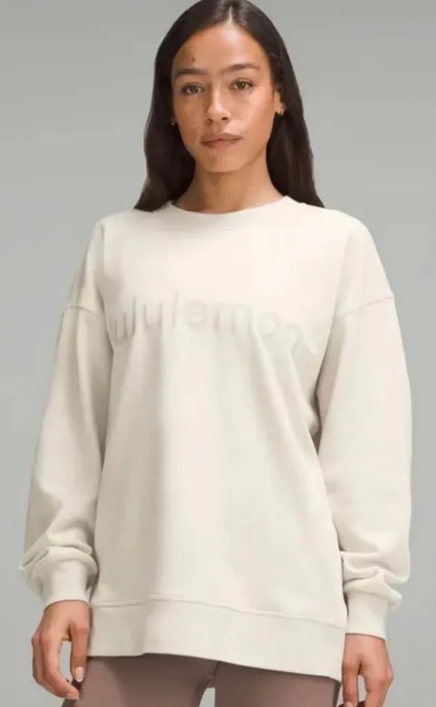 Lululemon NWT Perfectly Oversized Crewneck Sweatshirt Pullover Bone Size 6 graphic Spell Out Wordmar... Show more