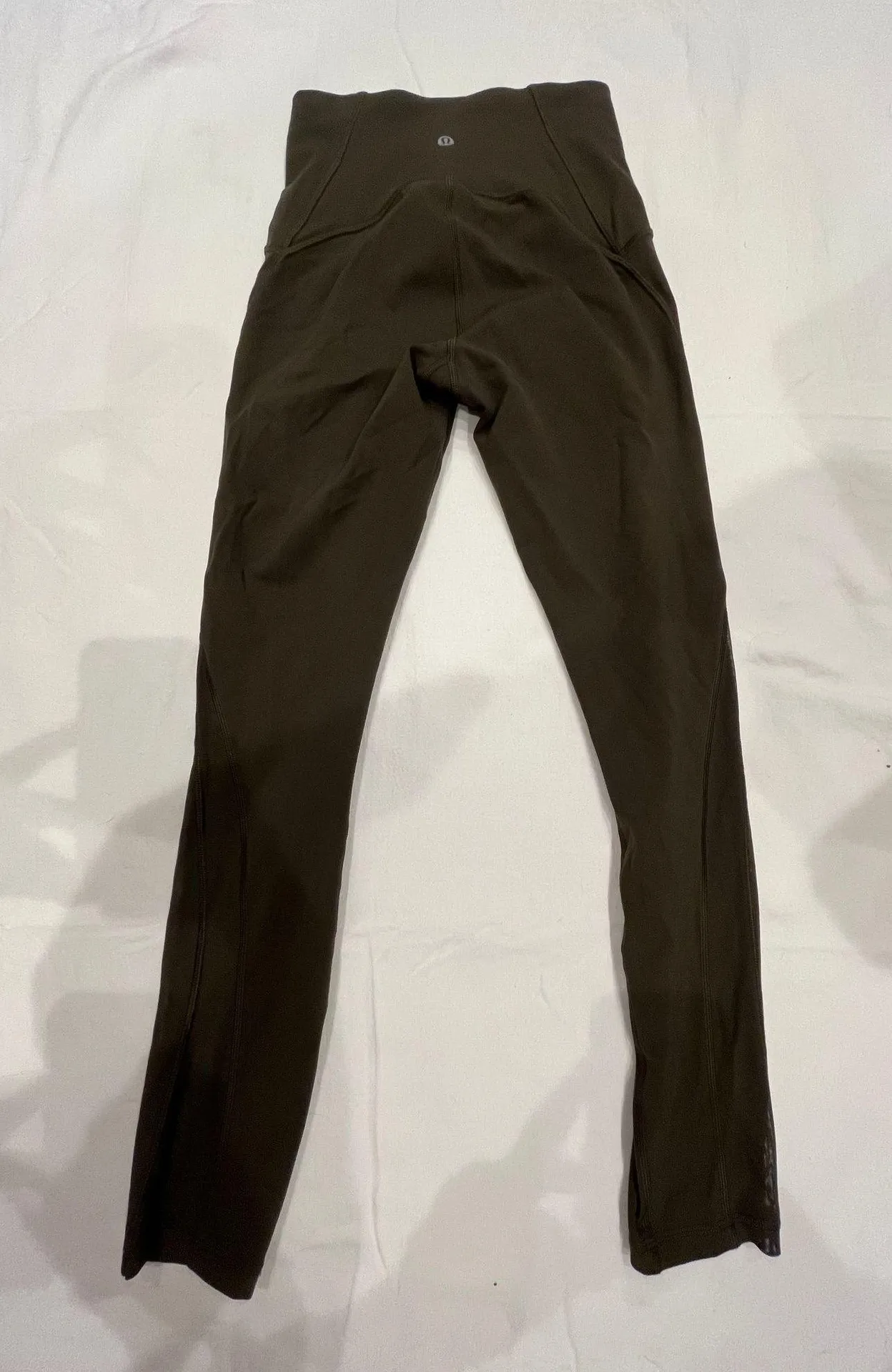 Olive green Lululemon leggings with mesh insert. Perfect condition, no signs of wear. Full length, h... Show more