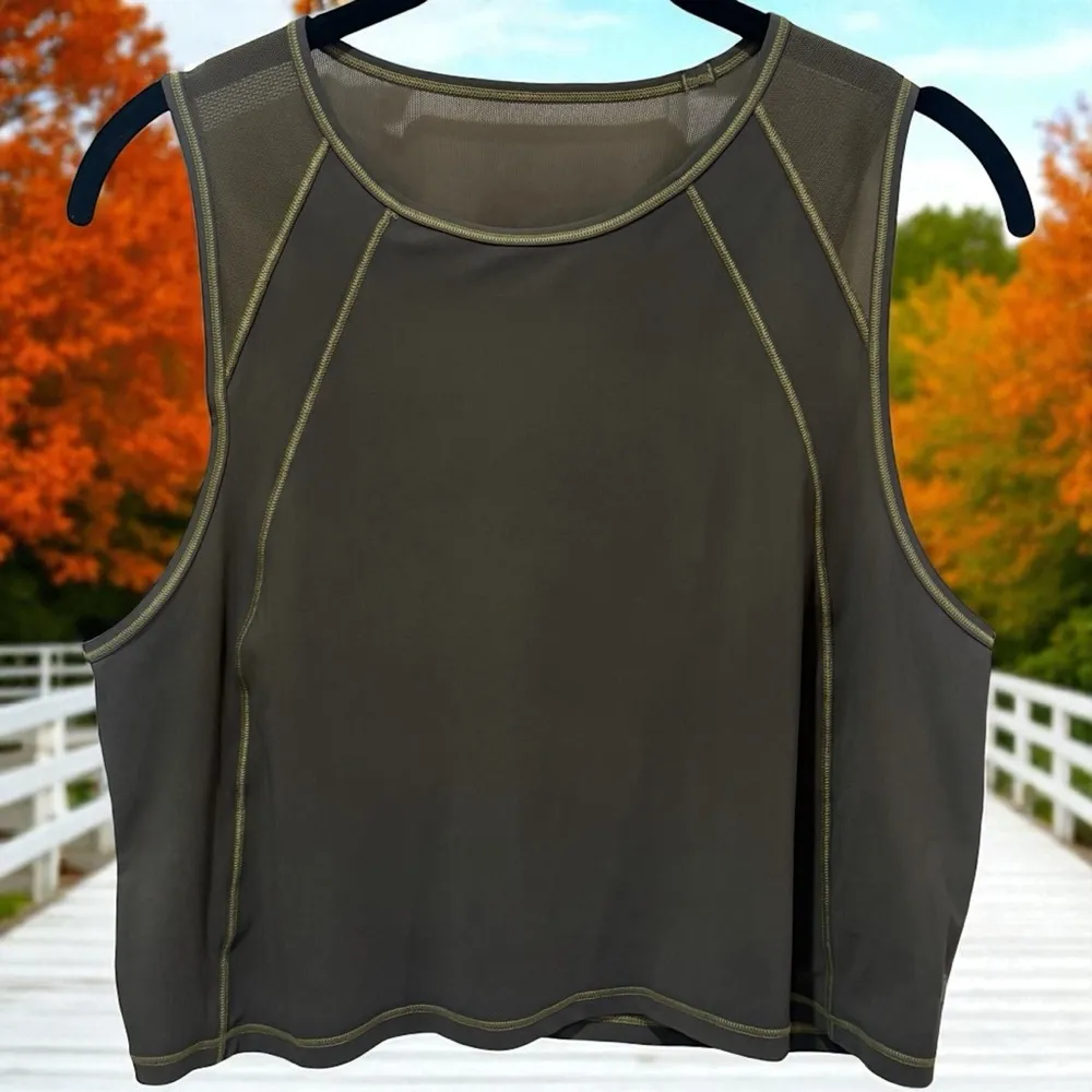 LuLuLemon Olive Green Mesh Detail Athletic Tennis Pickleball Crop Tank Size S/M *Garment does not ha... Show more