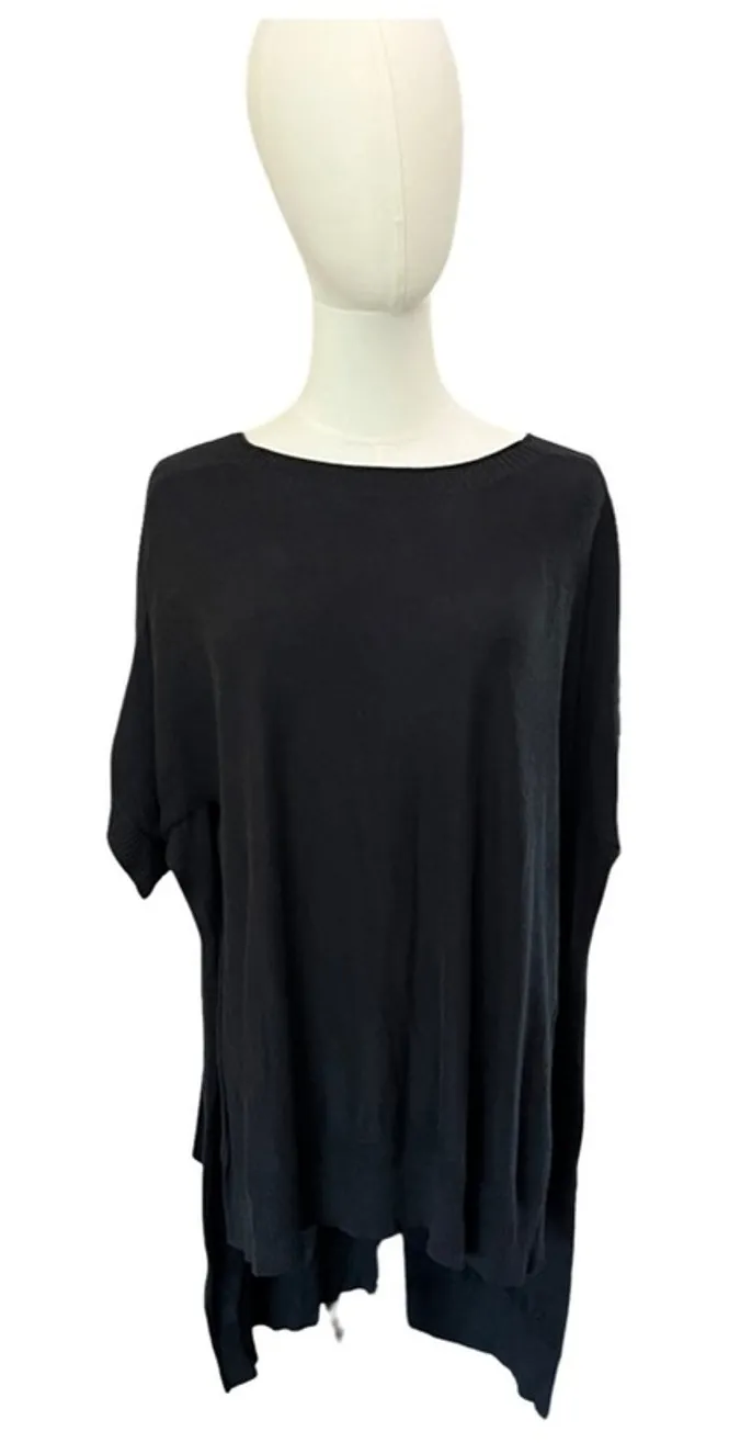 This ultra-cozy Lululemon black oversized sweater. Designed in Vancouver and made from a luxurious viscose, nylon, acrylic, and cashmere blend, this soft knit features an easy one-size-fits-most silhouette. The high-low hem, drop shoulders, and vented sides create a flowy, flattering drape for effortless layering over leggings, denim, or activewear. Subtle pointelle detailing and a wide ribbed neckline add textural interest and breathability.