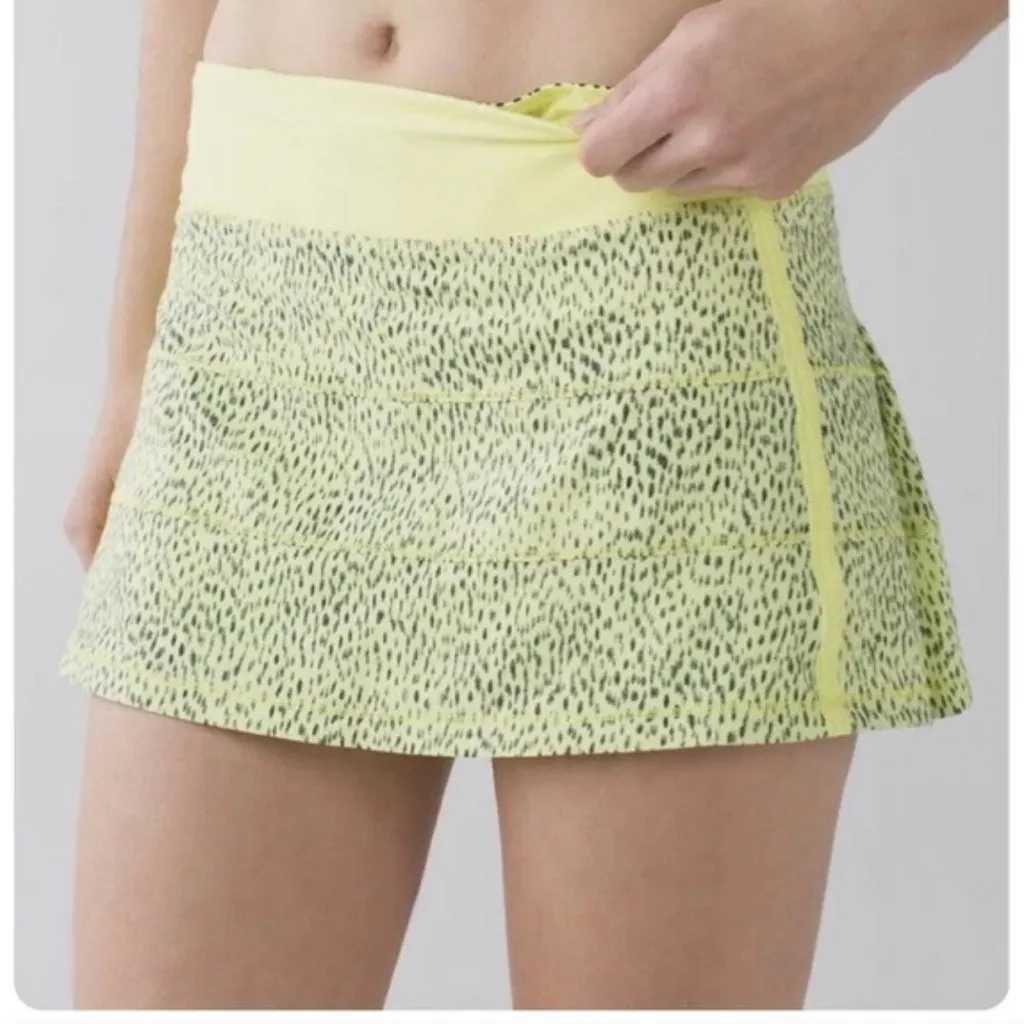 Stylish yellow skirt with black patterns. Perfect for casual outings.