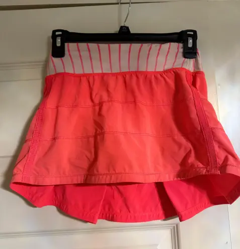 •bright coral and pink color striped skirt •has undershorts and elastic waste band •excellent condi... Show more