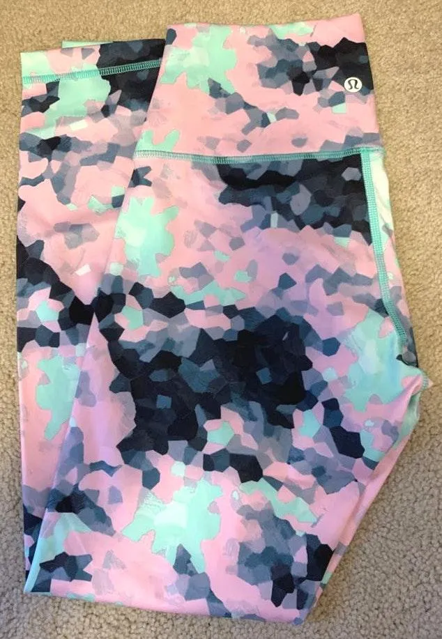 Patterned lululemon leggings, 7/8 length, worn once. The material won’t pill
