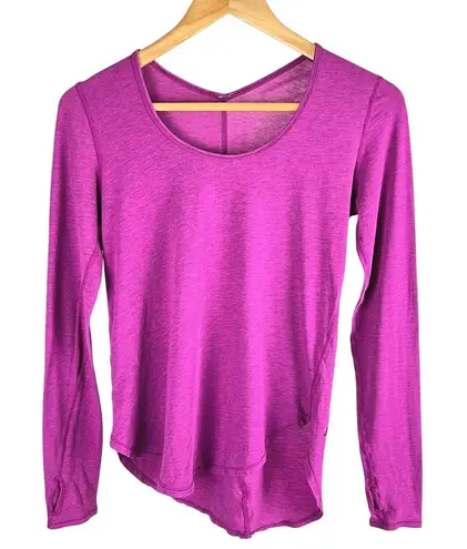 Keywords: Lululemon, long sleeve top, athletic shirt, purple top, yoga top, running shirt, workout top, thumb holes, scoop neck, activewear, fitness apparel, casual top, women's top