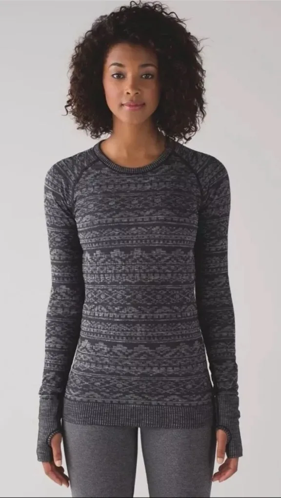 Chic black patterned long sleeve. Ideal for workouts or casual wear. Soft and comfortable fit! Has h... Show more