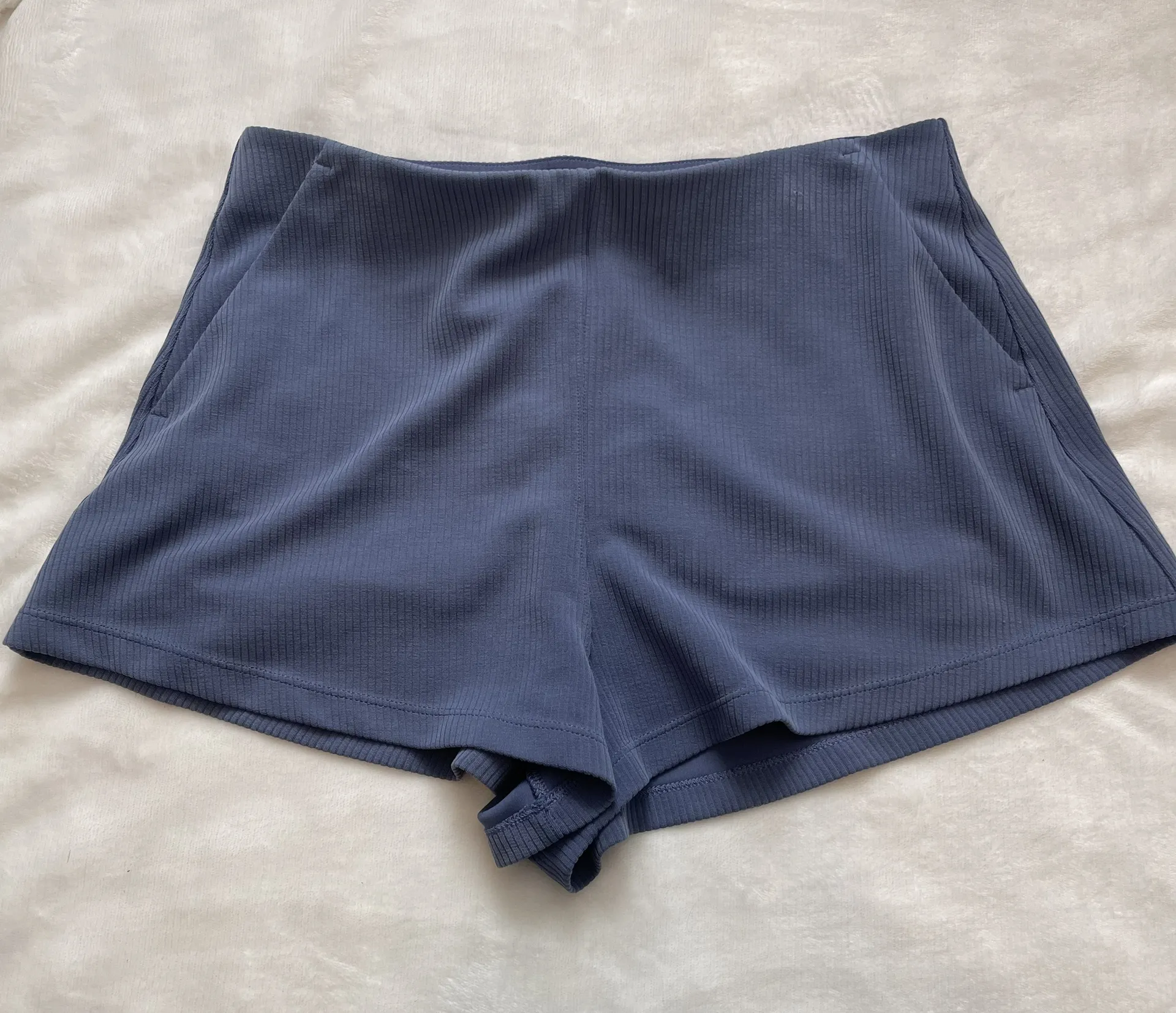 ribbed softstreme high rise shorts originally $88 size 10 oasis blue two small pin holes in the fro... Show more