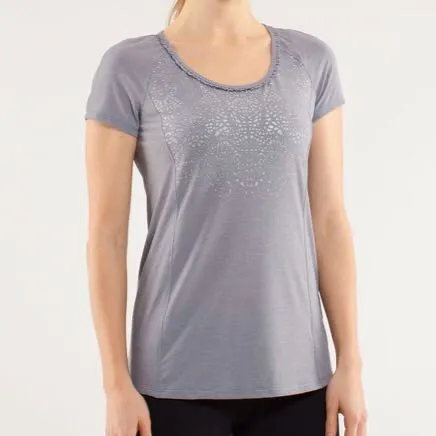 Lululemon Athletica Heathered Fossil /Cut-Out Lace Reflective Print Run: Wild Short Sleeves Tech Ta... Show more