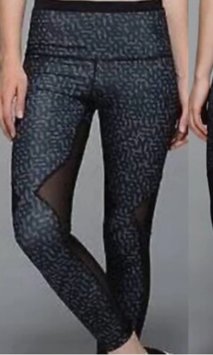 Lululemon Running In The City 7/8 Leggings Size 6 Heathered Net Pop Black Mesh Back and around k... Show more