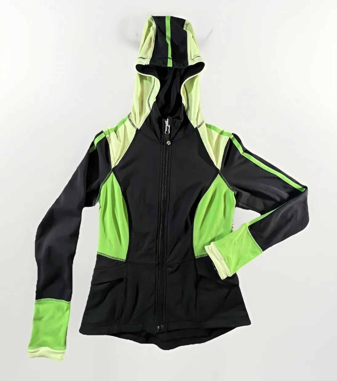 * Lululemon Scuba Hoodie Jacket – women's size 8 * Bold black & neon green colorblock with full zip... Show more