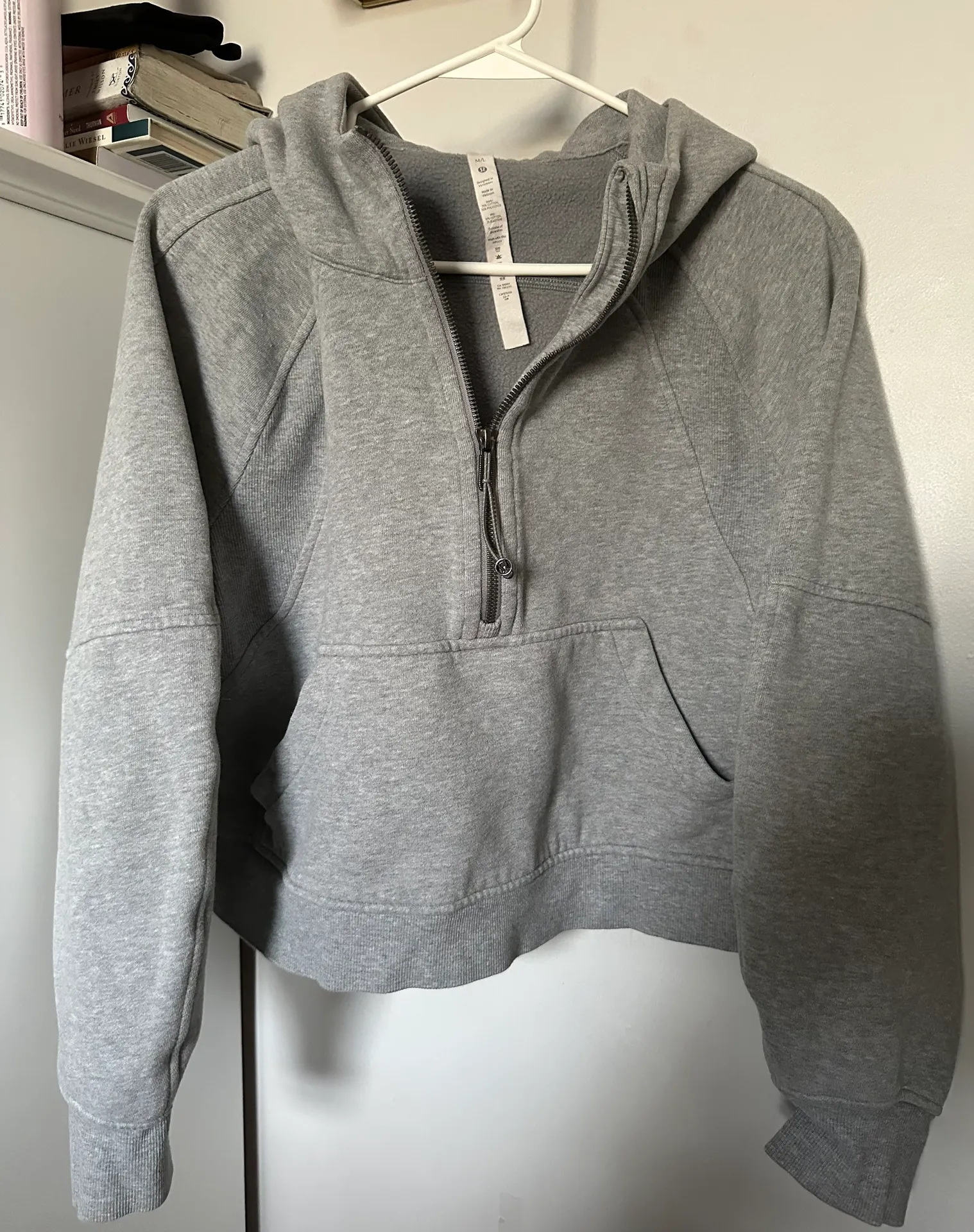 Condition: Excellent, Color: Heathered Medium Gray, Half Zip, Size: M/L
