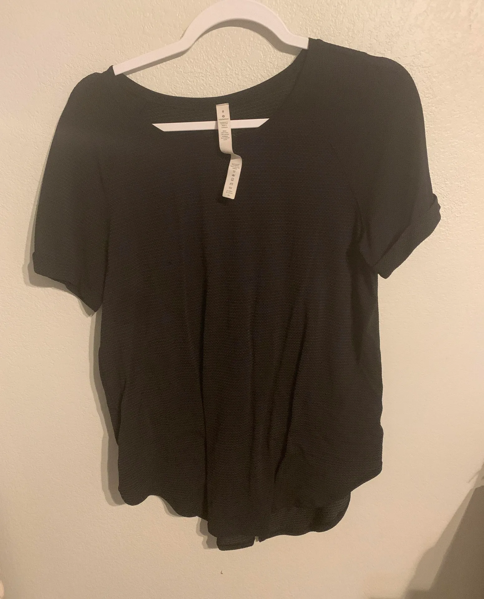 Lulu shirt barely worn, has been tied hanging up so that’s why it has those creases. But in great co... Show more