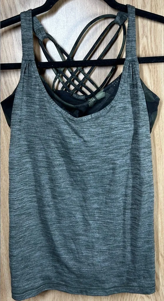 The Lululemon Size 4 Free To Be Serene Gray Built In Camo Bra Stappy Back Tank Top is a stylish and... Show more