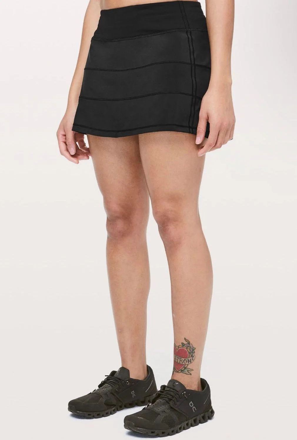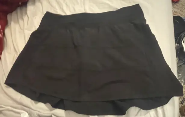 super cute black pace rival skirt tall from lululemon. 15 inches and mid rise, but can be high rise... Show more