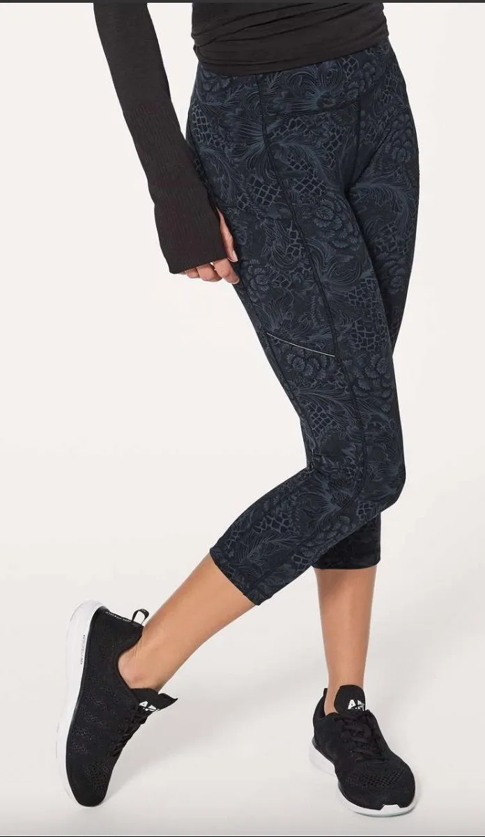 Lululemon Speed Up Crop 21 inch leggings in Nouveau Mach Blue Black featuring a captivating all-over... Show more