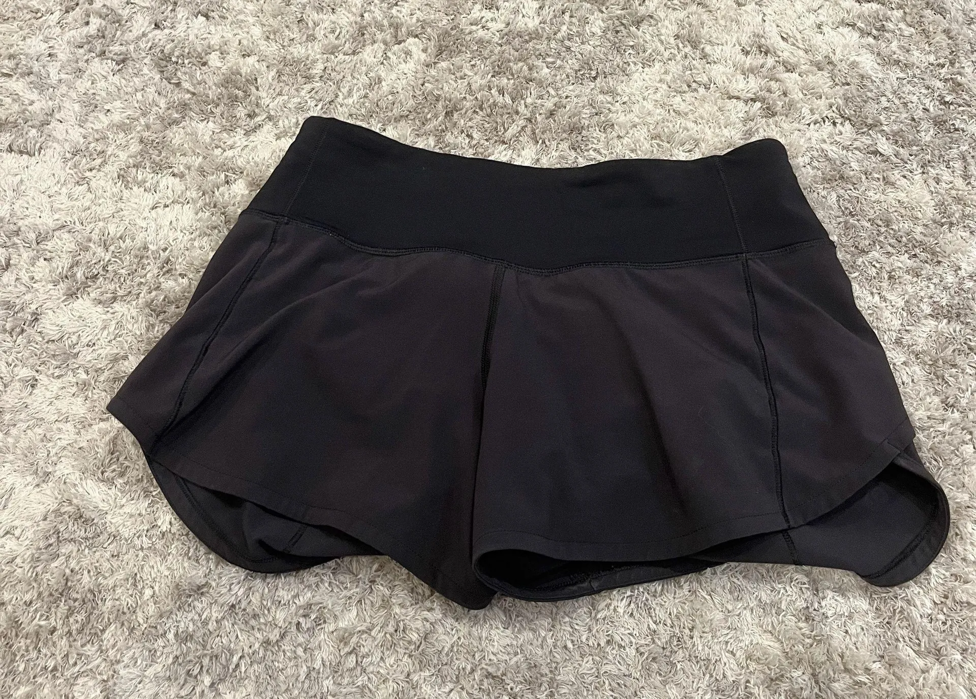 Black Lululemon speed up mid rise shorts 4” in a size 2. Perfect condition!