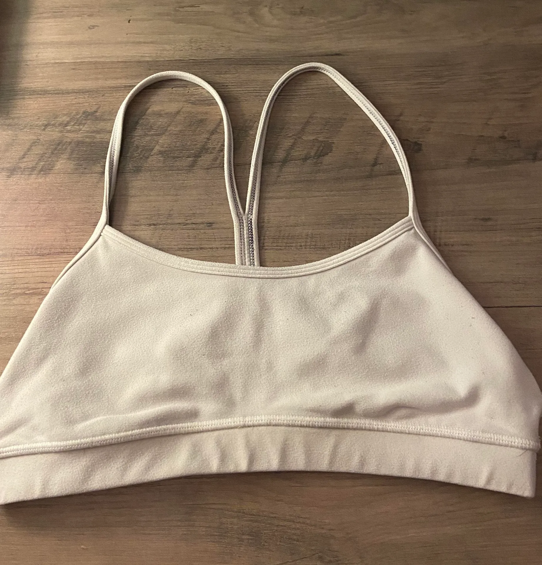 White lululemon sports bra. No pads but the material is on the thicker side. Excellent condition, no... Show more
