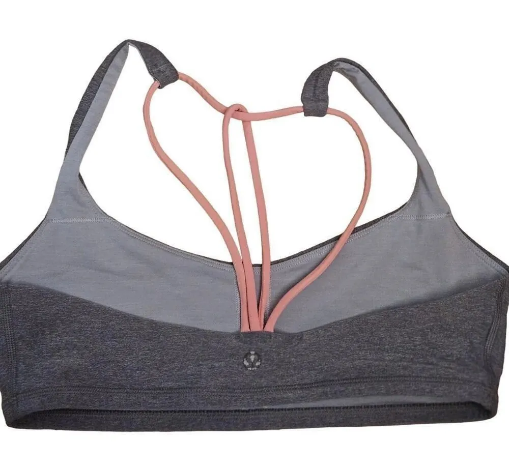Lululemon Strappy Sports Bra Athletic Yoga Performance Gray Pink Women's Size 8 Product Description... Show more