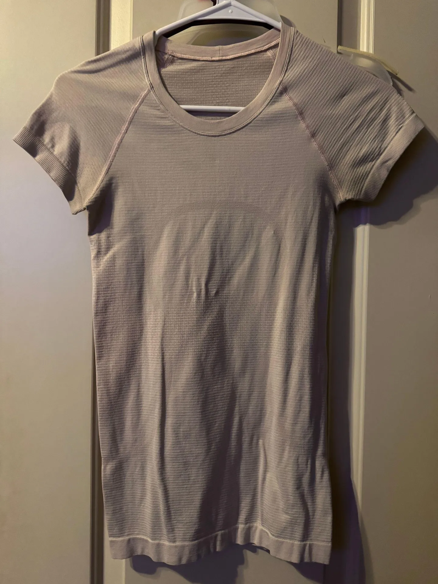 Looks white in picture but it’s a light pink. On the back has some slight snag holes but they’re not... Show more