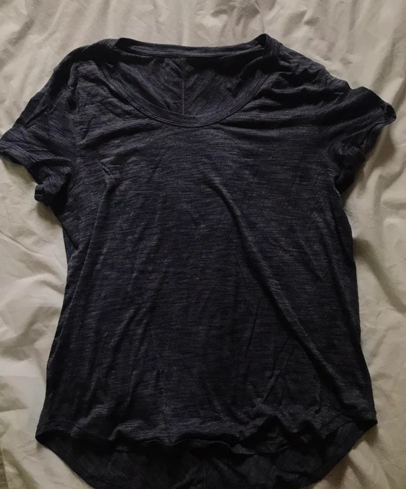 Lululemon heathered navy blue workout tshirt Lightly worn Tag fell out but likely a size 6 (I typica... Show more