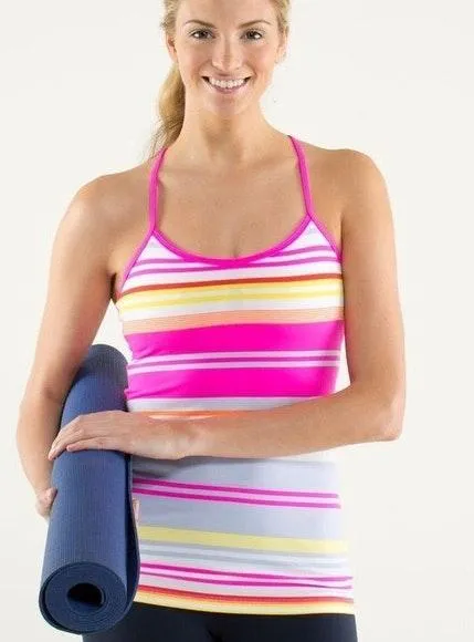 Lululemon Power Y Tank Luon Light Raspberry pink striped stripes in size 4 Made of moisture-wicking... Show more
