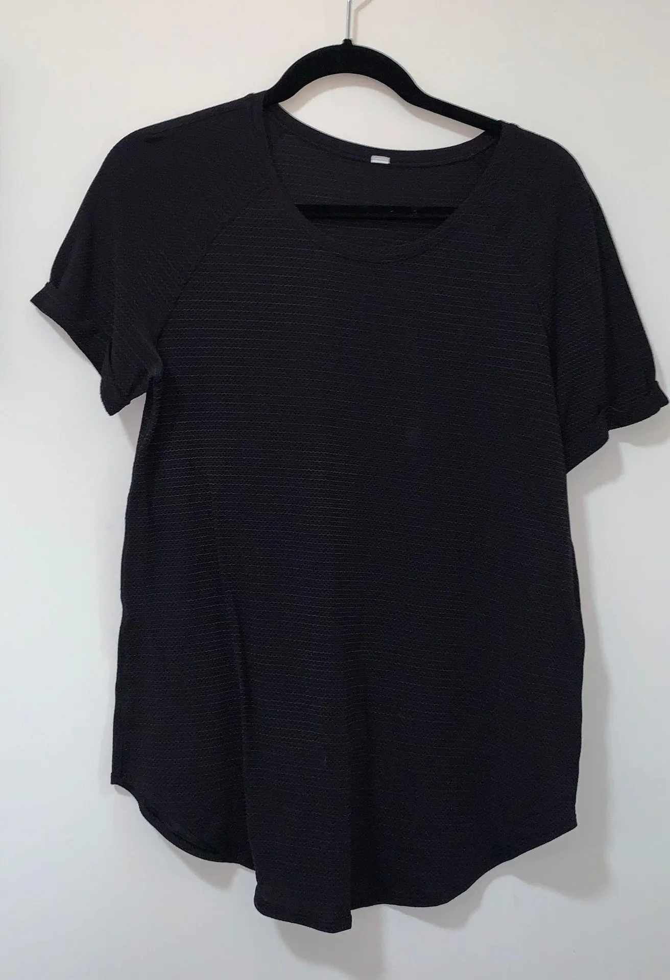 Short sleeve lululemon top. Size 6, small. Open back and can tie for a cute look! In great condition... Show more