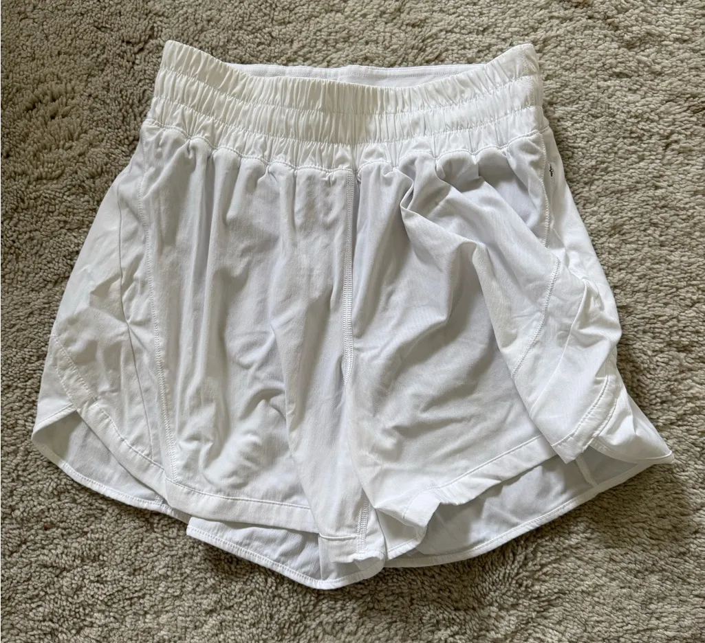 White 5β inseam lined shorts from Lululemon π€ never worn in a size 8 (M). Perfect for running and t... Show more