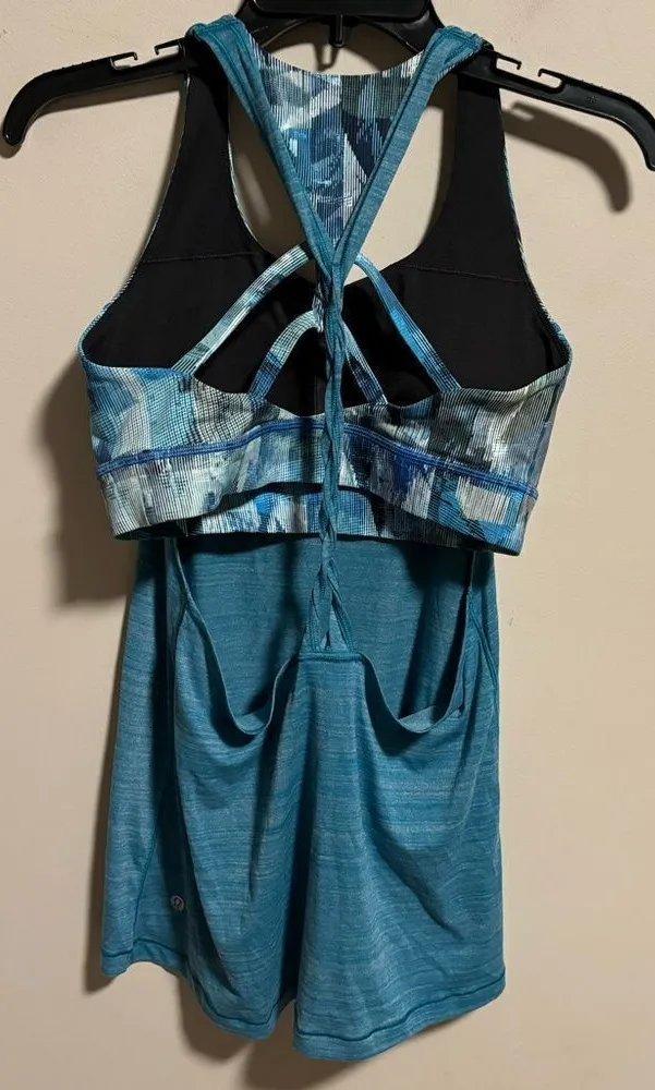 Lululemon Twist & Toil Tank Heathered Teal Blue / Sun Dazed Multi Blue Size 8 Great condition. No ri... Show more