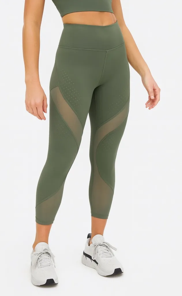 These Lululemon Uncovered Strength leggings offer a high-rise cropped fit with mesh panels and laser... Show more