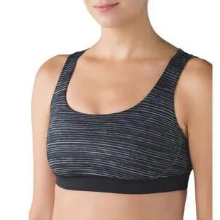 pattern on the front. Solid black and grey on the back straps. Crispy Lululemon logo. This bra is pr... Show more