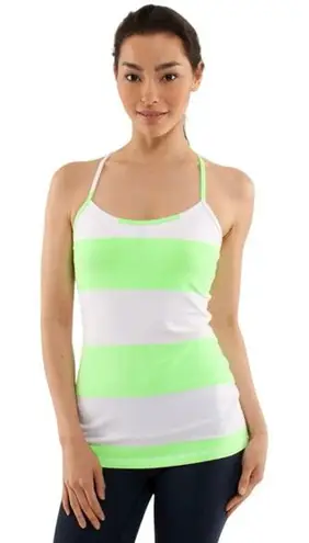 Lululemon Women 8 Power Y Tank Luon Light Bold Stripe Zippy Green Neon Green with large ruby style s... Show more