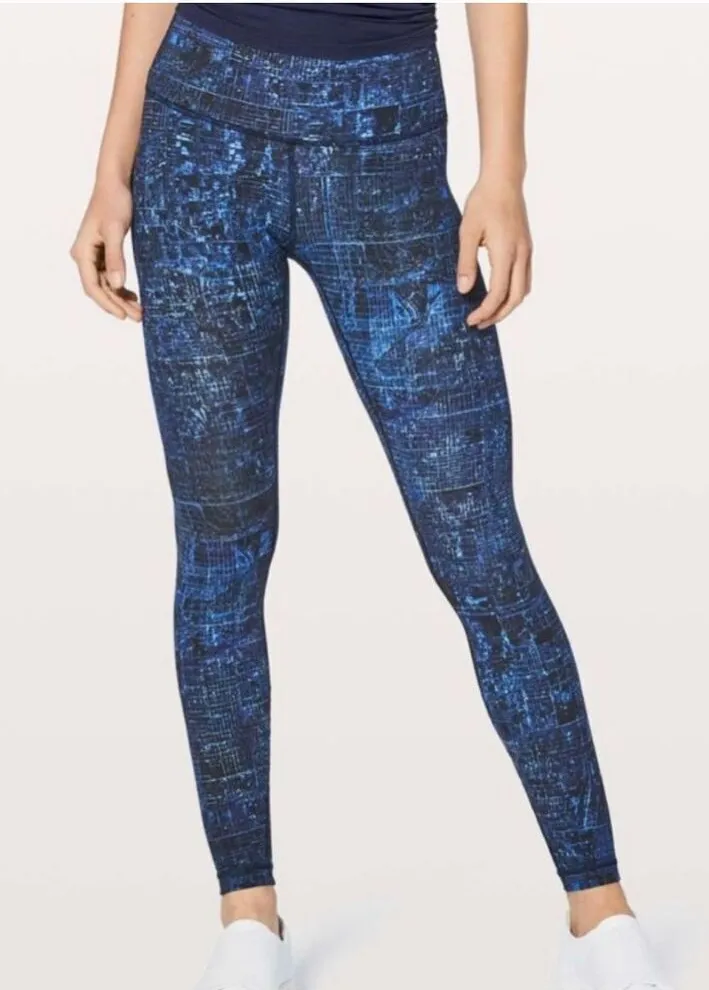 Lululemon Womens City Lights Wunder Under High Rise Tight Leggings Blue Black 2 Features: Brand: Lu... Show more