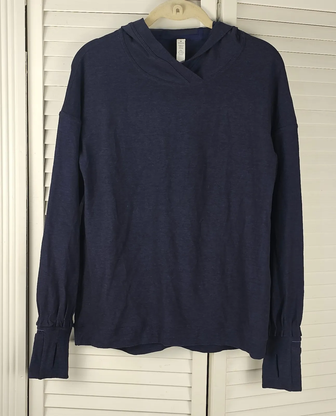 Lululemon Womens Heathered Hero Blue Black Extra Mile Hoodie 4 Bust: 38" Arms: 22" Length: 24" fron... Show more