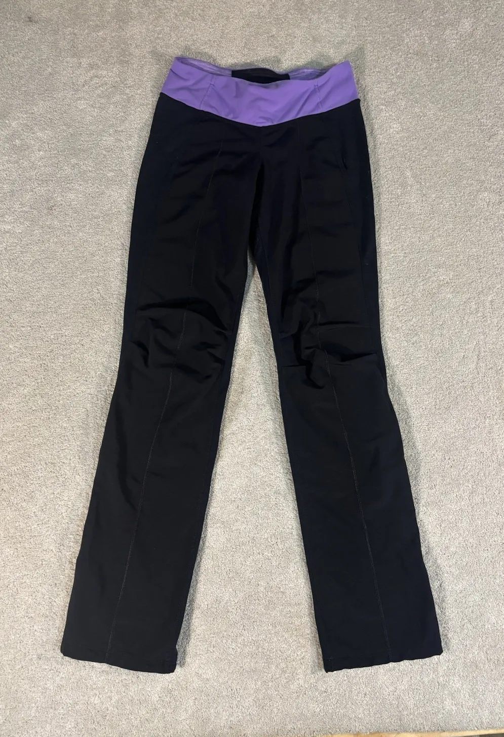The product is a pair of Lululemon women's straight leg pants in size 4, featuring a mixed material... Show more