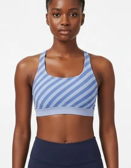 Crisscross strappy back accents Pullover style Stretch performance fabric Supportive slim fit Nylon... Show more