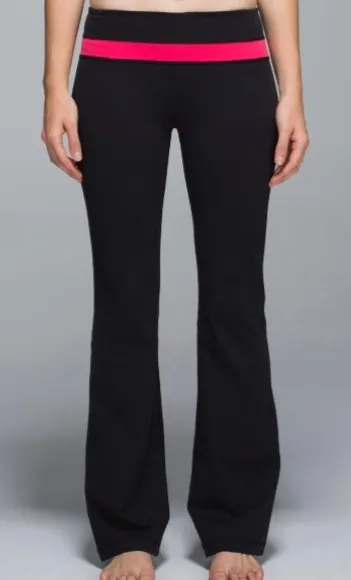 Lululemon women’s size 12 pant. Leggings feature black full-on Luon fabric; medium rise; flare fit;... Show more