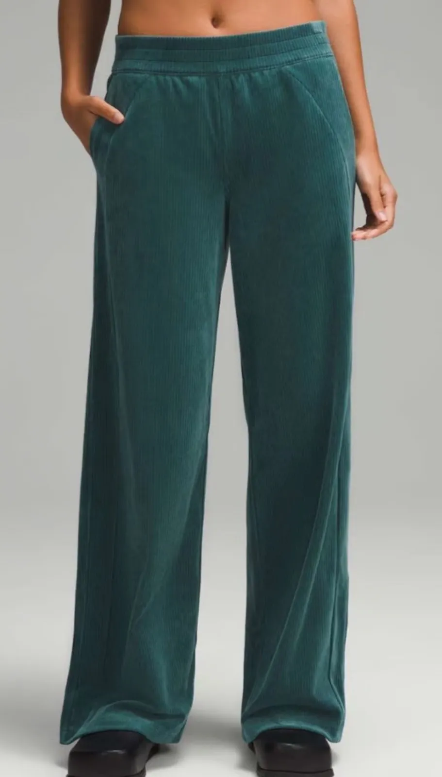 Keywords: teal pants, corduroy pants, wide leg, elastic waist, lounge pants, casual wear, womens fashion, comfortable, boho, streetwear, athleisure, fall fashion, winter wear